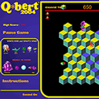 Move Q*bert between the squares by jumping about avoiding the bad guys. Q*bert is a orange critter with a large nose. This game was one of the earliest puzle games and was largely successful on the apple.