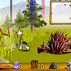 A legendary sword is lost in a far land infested of mythologic creatures and skeletons. Collect the magical marbles to pass through each area, items to make you more powerful and foods to restore your life in your way to find the lost sword. Fight and kill the most creatures you can using your magical sword of your guns, the want to eat your body and soul.